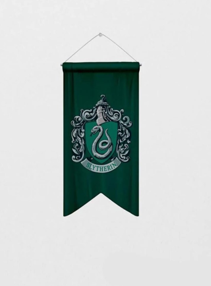 Parlak yeşil renkte, Slytherin amblemi taşıyan minimalist tasarımlı duvar afişi, mütevazı pop kültür severler için uygun.