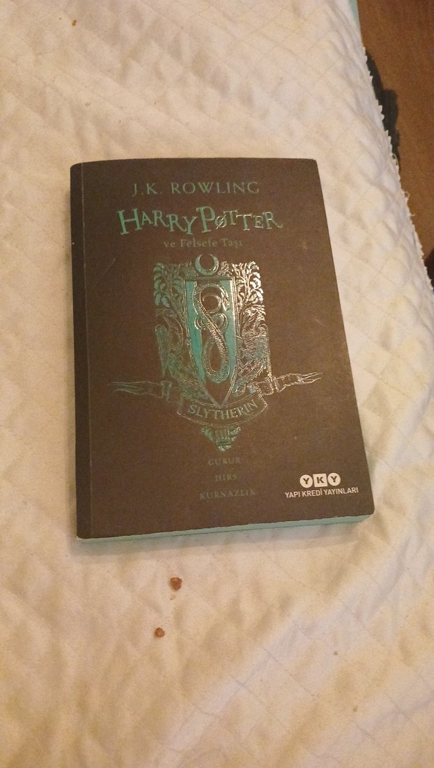 J.K. Rowling'in Harry Potter ve Felsefe Taşı kitabının Slytherin temalı Türkçe baskısı. Yapi Kredi Yayınları tarafından yayımlanmıştır.