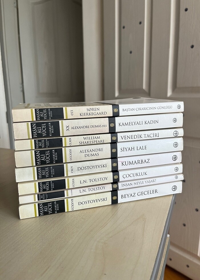 8 adet klasik kitap bir kaçında altı çizili cümleler bulunmakta onun dışında okumayı engelleyecek bir durum yok