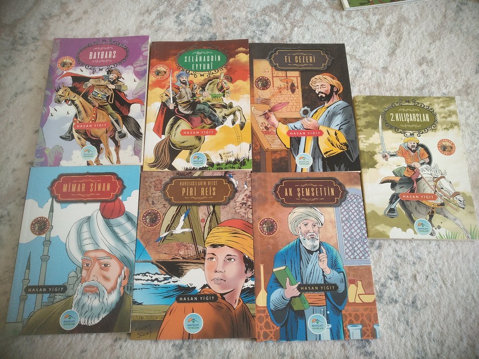 Hasan Yiğit'in Selahaddin Eyyubi, Piri Reis, El Ceziri ve Ak Şemseddin gibi tarihi şahsiyetleri anlatan çocuk kitapları seti.