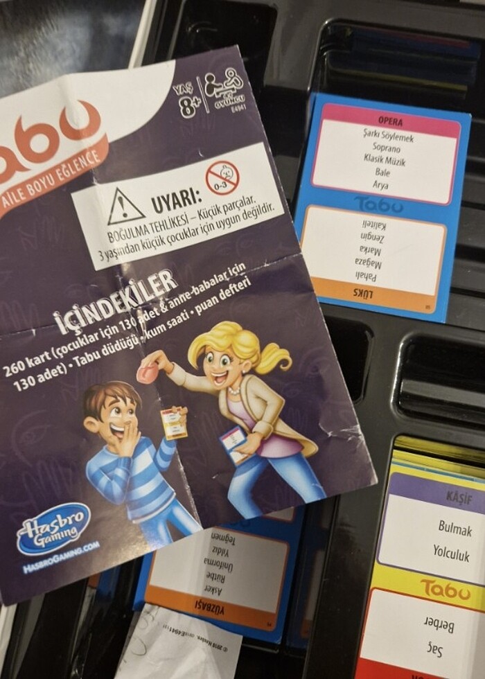 Hasbro Aile Boyu Tabu kutu oyunu, fotodaki gibidir.Kutusu hafif yıpranmıştır, fotodaki gibi