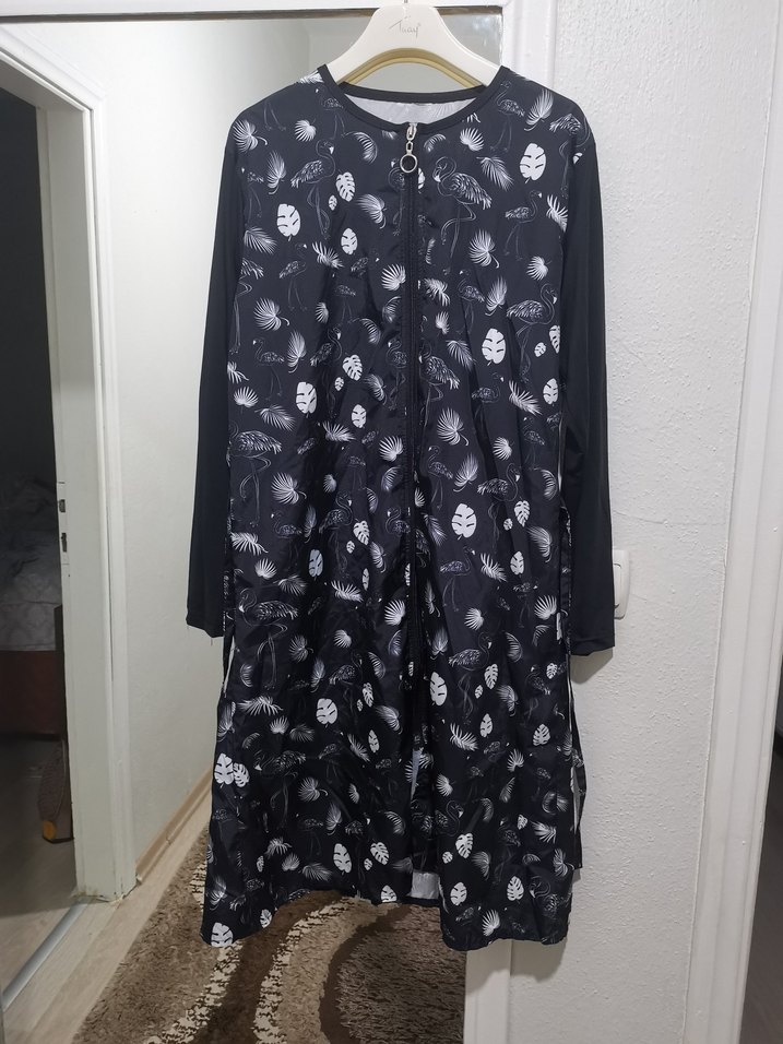 1 kez kullandım biraz kırışmış kusuru yok tertemiz taytı ve bonesiyle 3 lü takımdır çabuk kuruyan kumaştır çok rahat bir ürün taytın beli lastikli esnek kumaş tunik sıfır yaka bonesi de çıtçıtlıdır