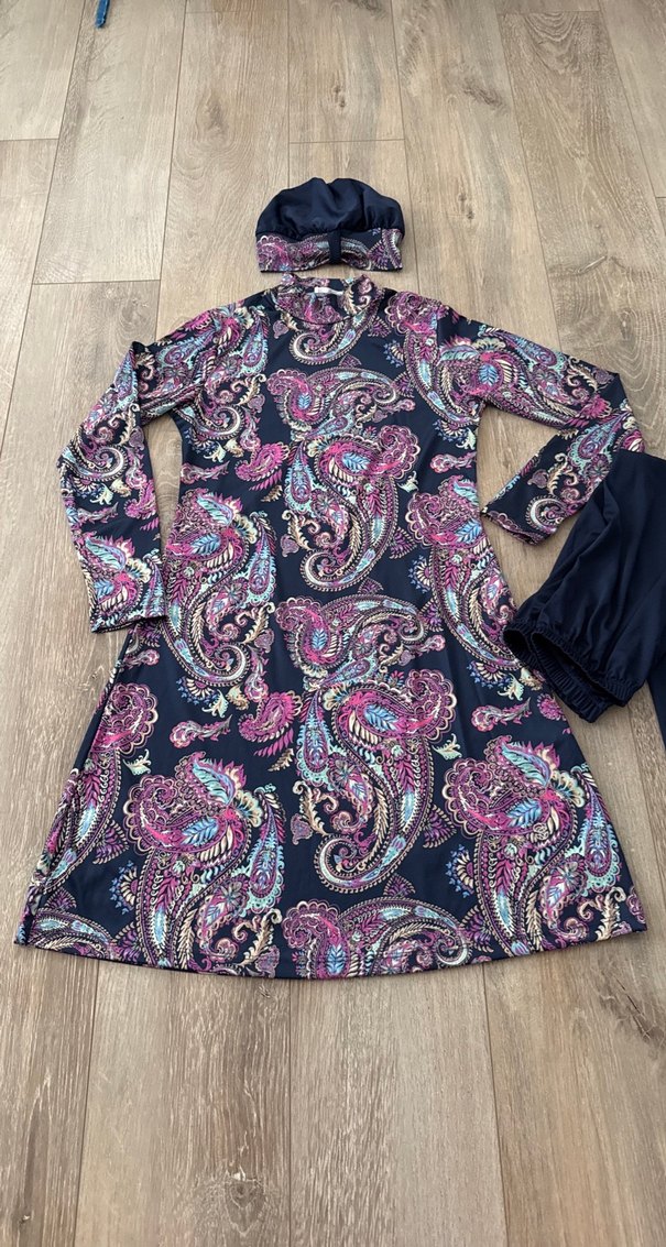 Çabuk kuruyan yumuşak kumaş. M beden. 3 parça tesettür haşema mayo. Çok iyi durumda.