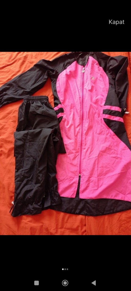 Fermuarlı, uzun kesimli, yüksek yakalı ve uzun kollu kadın eşofman takımı. Canlı pembe ve siyah sentetik kumaştan, sokak stili ve dış mekan kullanımı için uygundur. ♀️