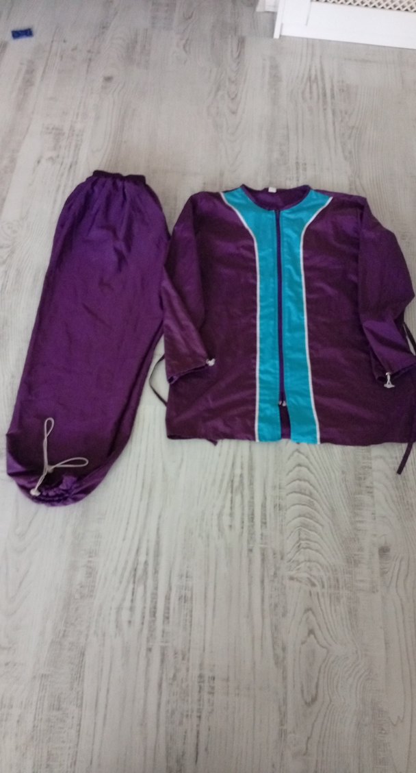 bol kesim, uzun kollu renkli. Fermuarlı ön kısım ve mavi detaylar bulunur. fermuarinin takma yerinde hafif bı açılma var ama kapanmasına engel değildir