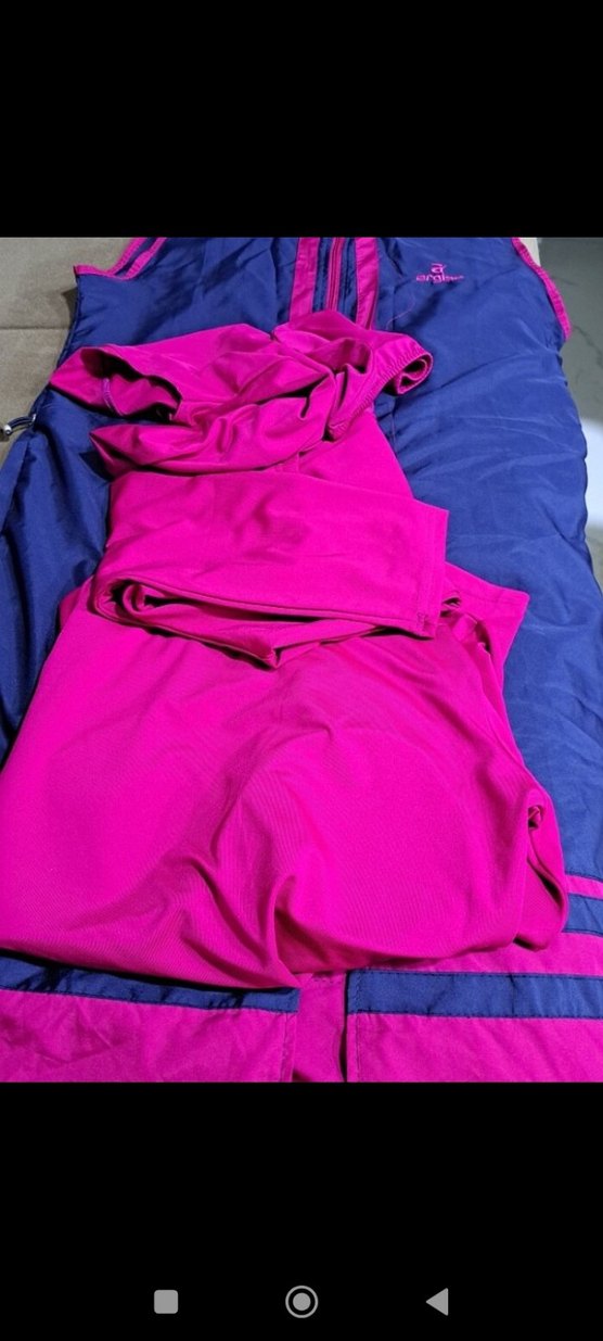 Fıt kesim, koyu pembe renkte, drapeli ve kolsuz üstü ile sentetik kumaştan yapılmış kadın haşema takımı. 2 defa giyilmiş