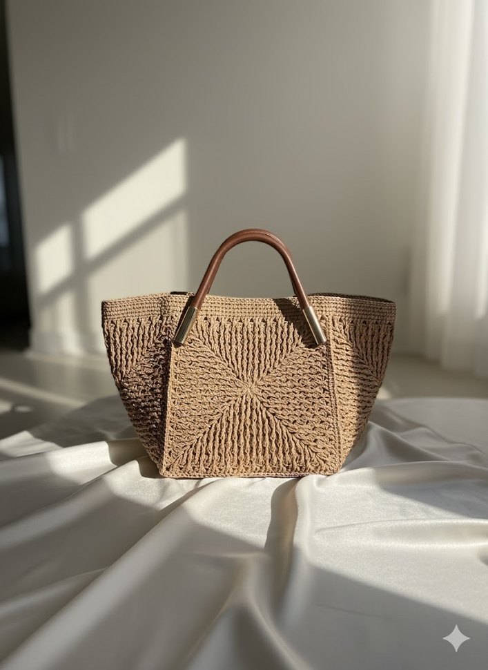 Hasır çanta el yapımıdır. İçi keçe astarlıdır. Detayları deridir. Deri fermuar kullanılmıştır.