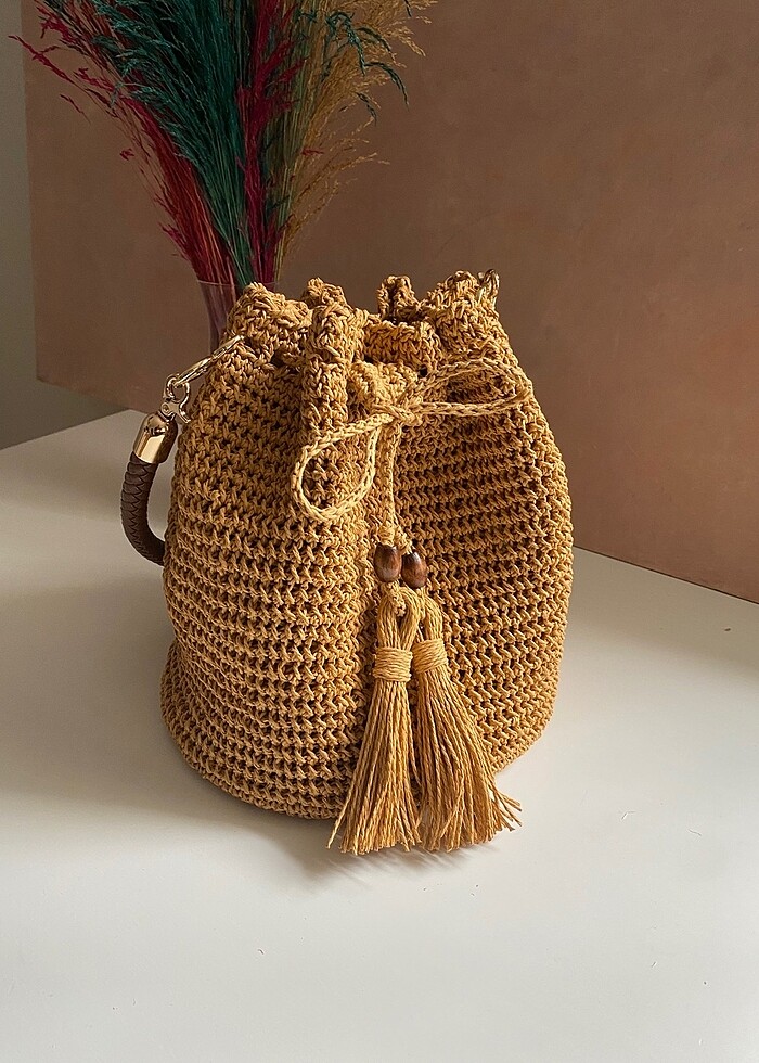 Kağıt iple örülmüştür deri taban ve kulp mevcuttur