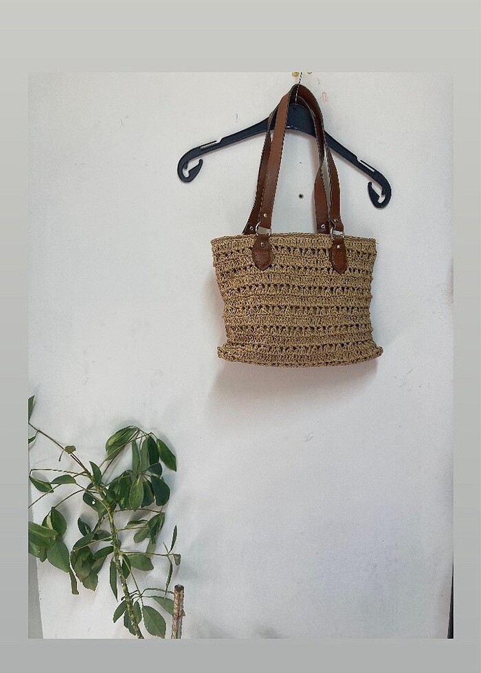 Kâğıt ip örme çanta içi astarlı fermuarlı çepli