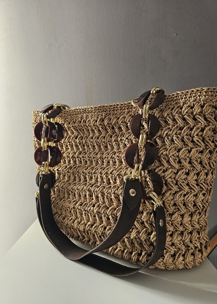 Fotoğraflar ürünün kendisine aittir El emeği örme çanta En: 34 cm Boy: 23 cm Her rengi özel siparişle hazırlanır Makinede yıkanmaz