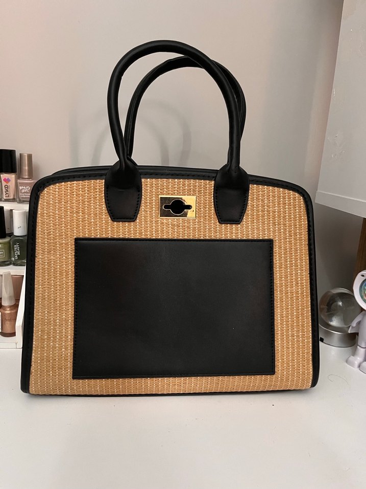 Hasır deri detaylı büyük el çantası hiç kullanılmadı defosu yoktur