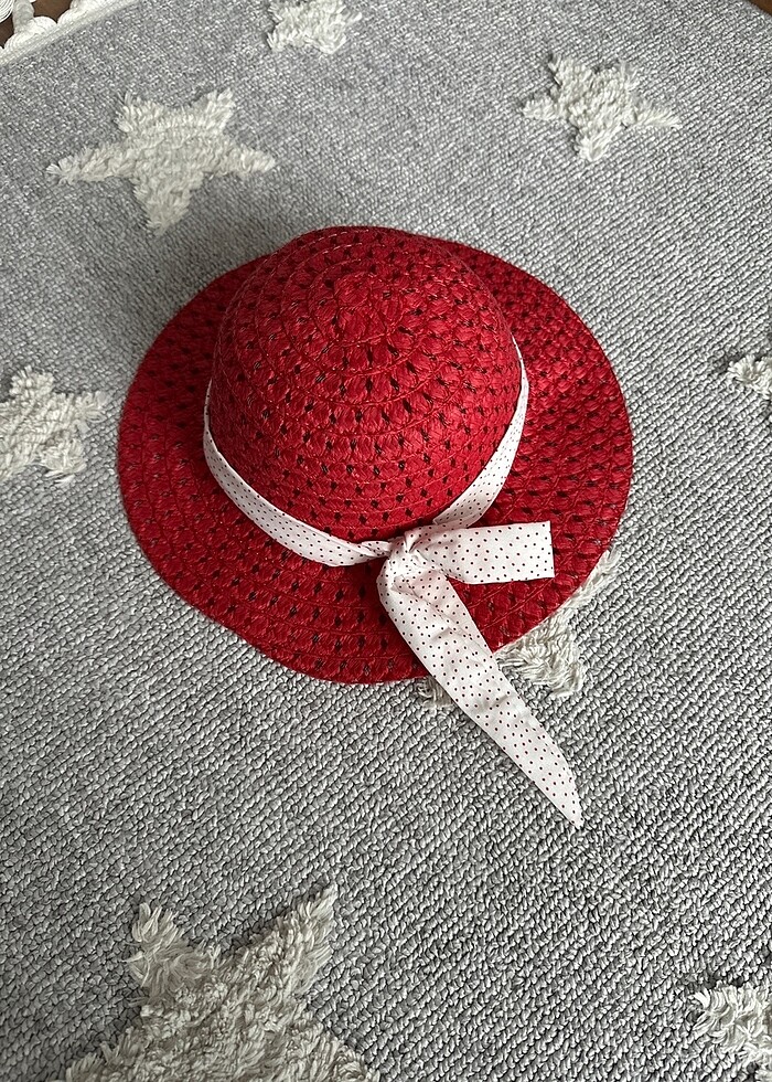 4-5 yaş puantiye detaylı hasır görüntülü şapka