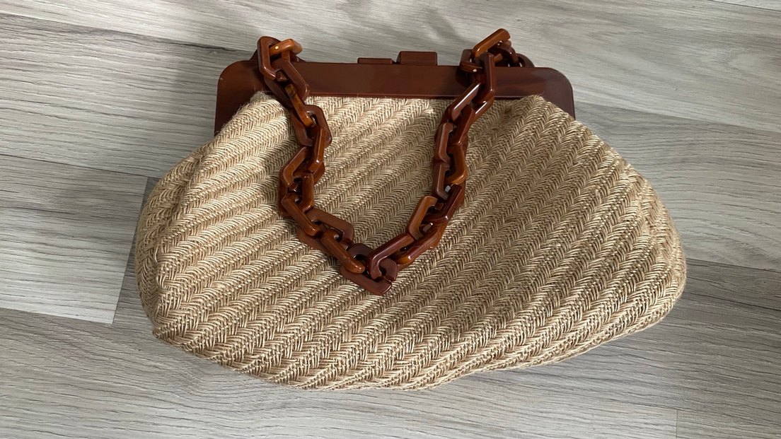 Kahverengi, hasır zincir detaylı kadın el çantası, günlük kullanım için bohem tarzıyla uyumlu.