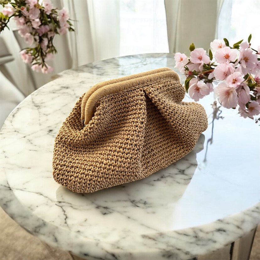 Hasır örgü clutch çanta