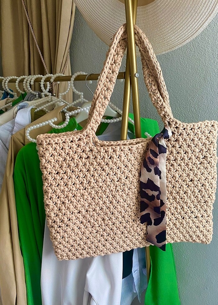 Hasır örgü penye plaj çantası