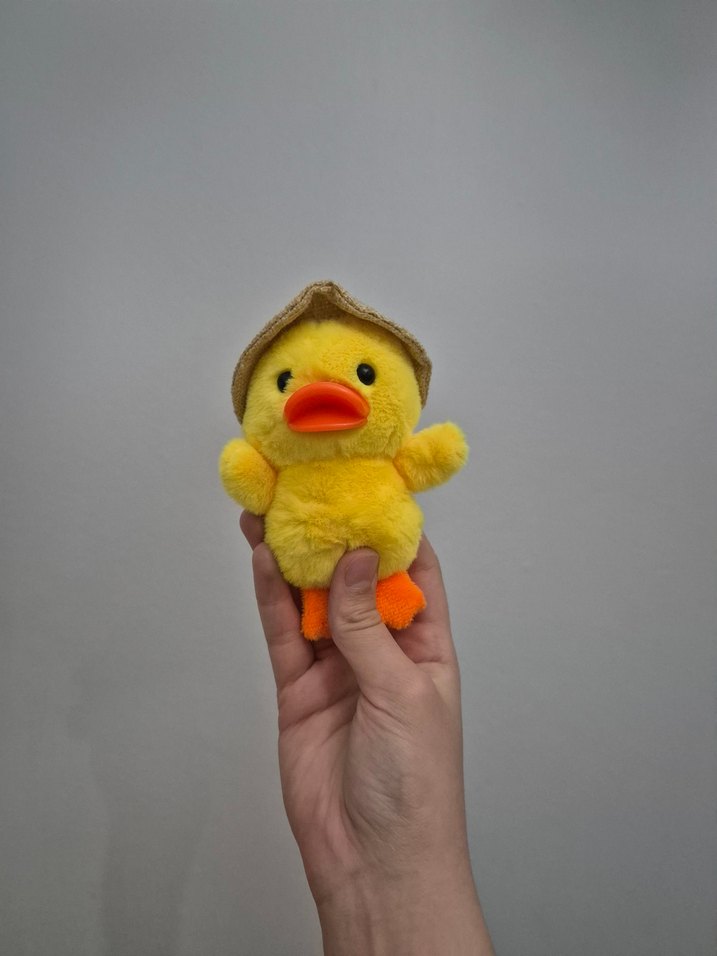 Yaklaşık 11-12 santimetre civarı, hiç kullanılmamış ve kirlenmemiş, yırtığı söküğü olmayan, etiketi üzerinde sevimli sevimli sarı ördek yumuşak anahtarlık. Anahtarlık olarak takabilmek için hem halkası hemde klipsi üzerindedir.