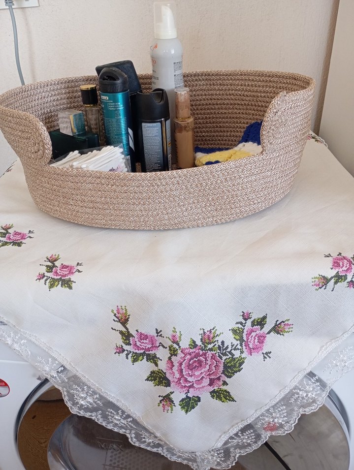hasır sepet ,eşyalarınızı düzenlemek için uygundur ve doğal bir görünüm sunar.