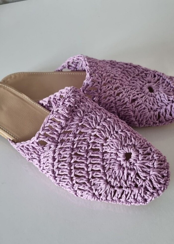 Lila rengi hasır terlik 1yada 2 kere gidilmiştir hiç bir deformesi falan yoktur