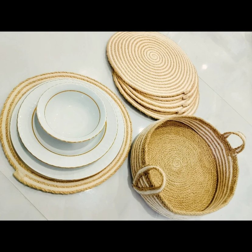 Hasır ipten 6 lı supla takımı ve ekmek sepeti kendim dikiyorum.
