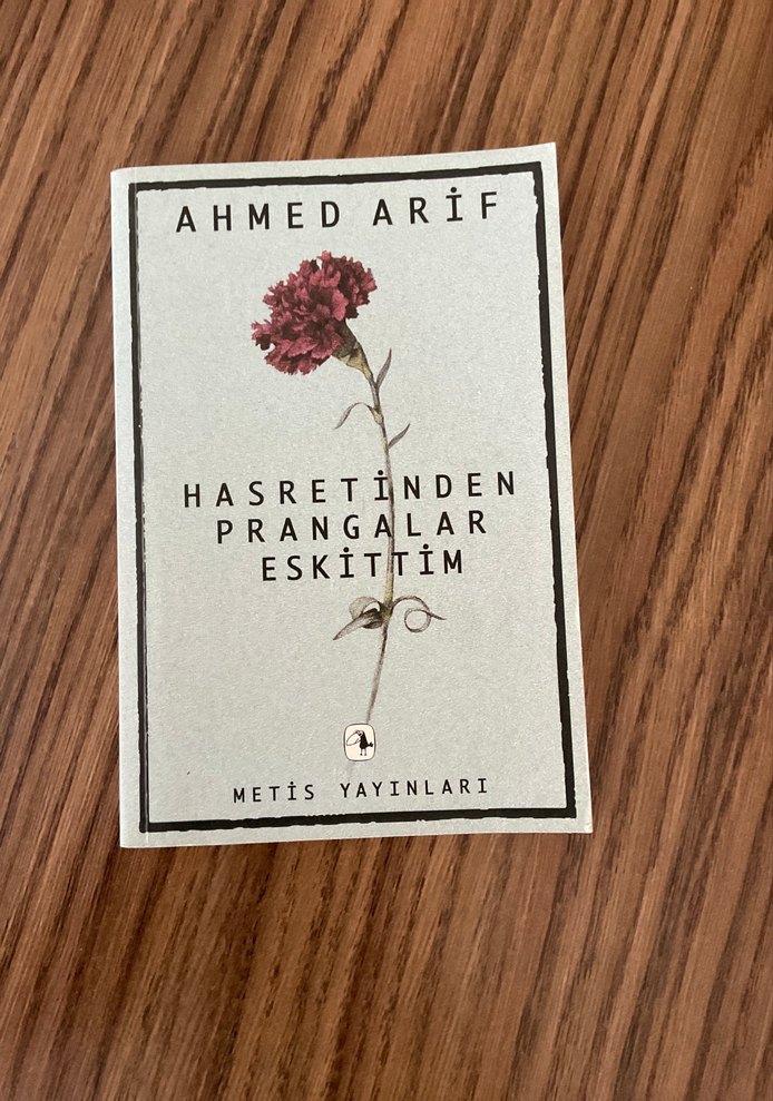 Ahmed Arif'in 'Hasretinden Prangalar Eskittim' adlı şiir kitabı, Metis Yayınları tarafından yayımlanmıştır, kapakta kırmızı bir çiçek resmi vardır.