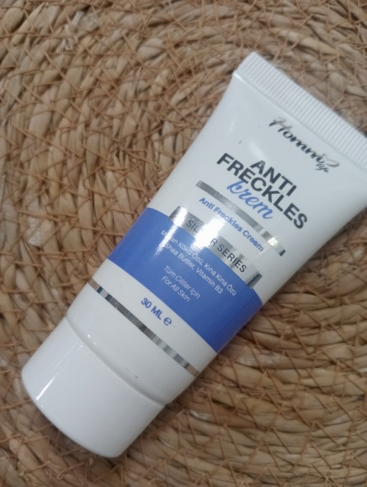 İpek proteini ve B5 vitamini içeren, hassas ciltler için leke karşıtı kremi. 30 ml tüpte sunulur.