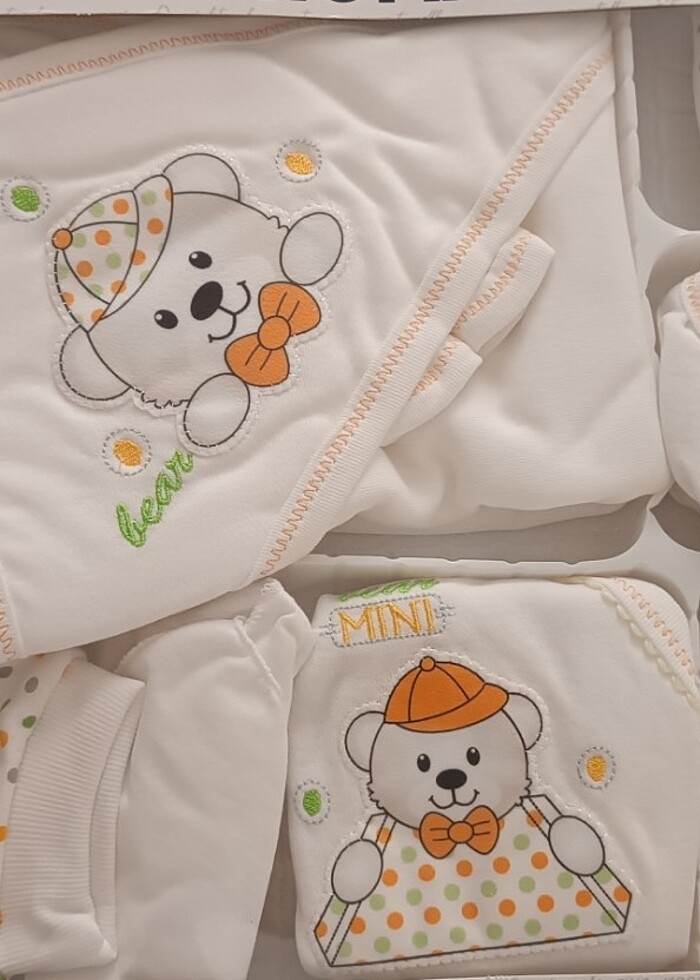 Hastane çıkışı takımımız 11lidir.İcinde battaniye,zıbın üstü,iç zıbın,zıbın altı,bady,atlet,külot,ağız mendili,önlük,bere ve eldiven var