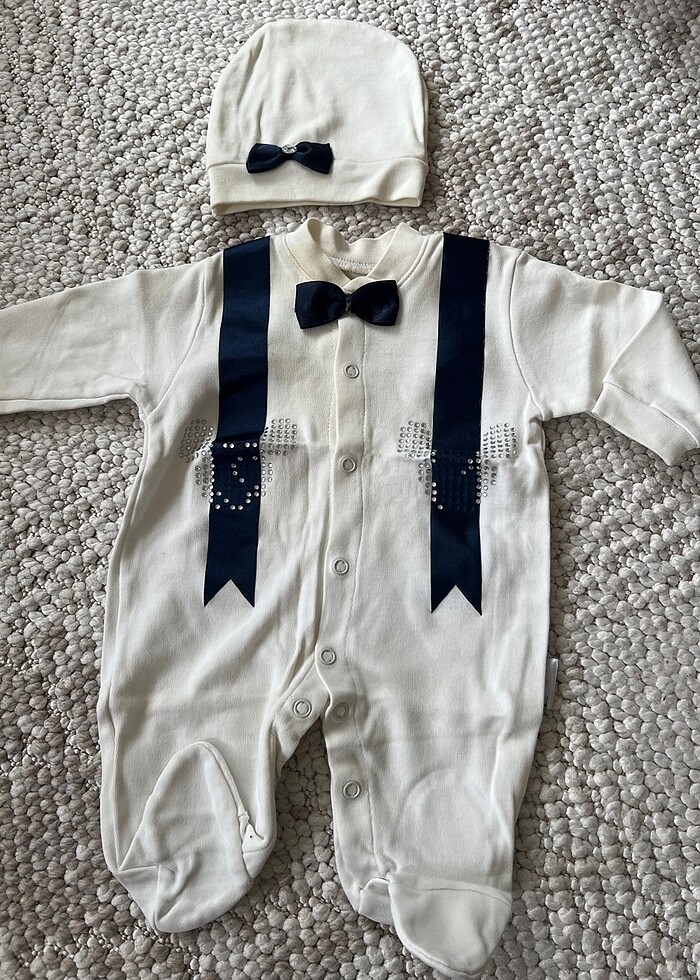 Yenidoğan hastane çıkışı tulum ve bere set. Bir kere giyildi sarı olmuş önü o yüzden fiyatı düşük tutuyorum. Güzel yıkamayla çıkar. #yenidoğan #tulum 0-3 aylık