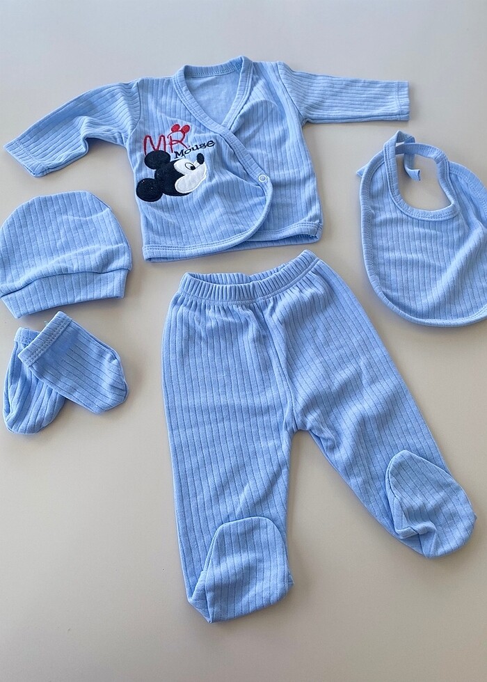 Beş parça hastane çıkışı sıfır üründür mavi renk yenidoğandır