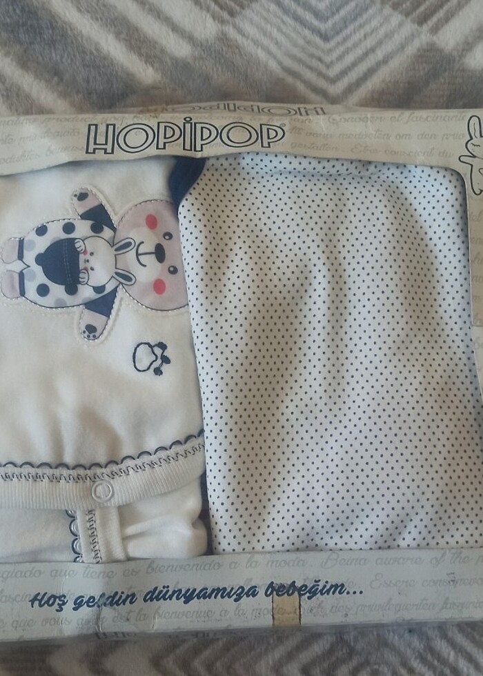 sıfır ürün. Battaniye de mevcut çocuğuma hediye geldi ama hiç açmadım. alt üst takım. eldiven önlük şapka iki adet zıbın ve battaniyesi var.
