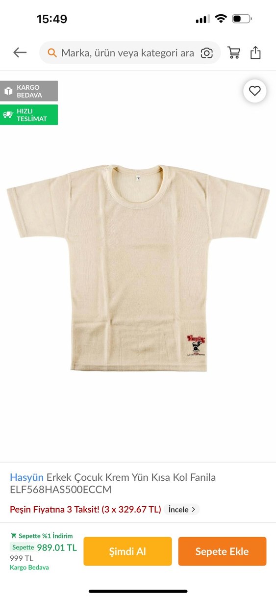 Krem renginde, kısa kollu ve yumuşak, sıcak tutan kumaştan erkek çocuk fanila. Rahat kullanım sağlar. Kızıma severem kışın giydirttim. 4 numara 2,5-3,5 yaş arası giydirttim ben