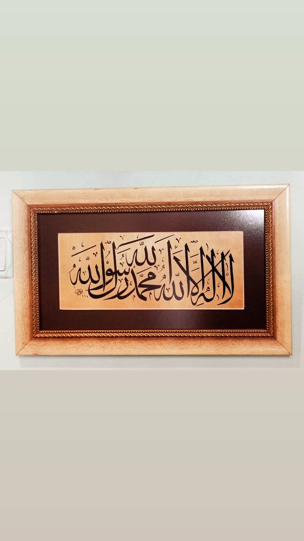 el çekme hat eseri " La ilahe illallah muhammedurresulallah" orjinal olup hatası yoktur. çerçevesi orjinal ahşabtır. ürün hattattan temin edilmiştir ketebe kulali