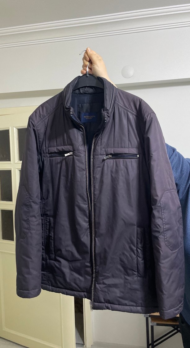 Hatem Sayki markalı, gri renkli, fermuarlı ve kruvaze yakalı, uzun kollu, fit kesim erkek mont. Yumuşak sentetik kumaştan üretilmiştir.