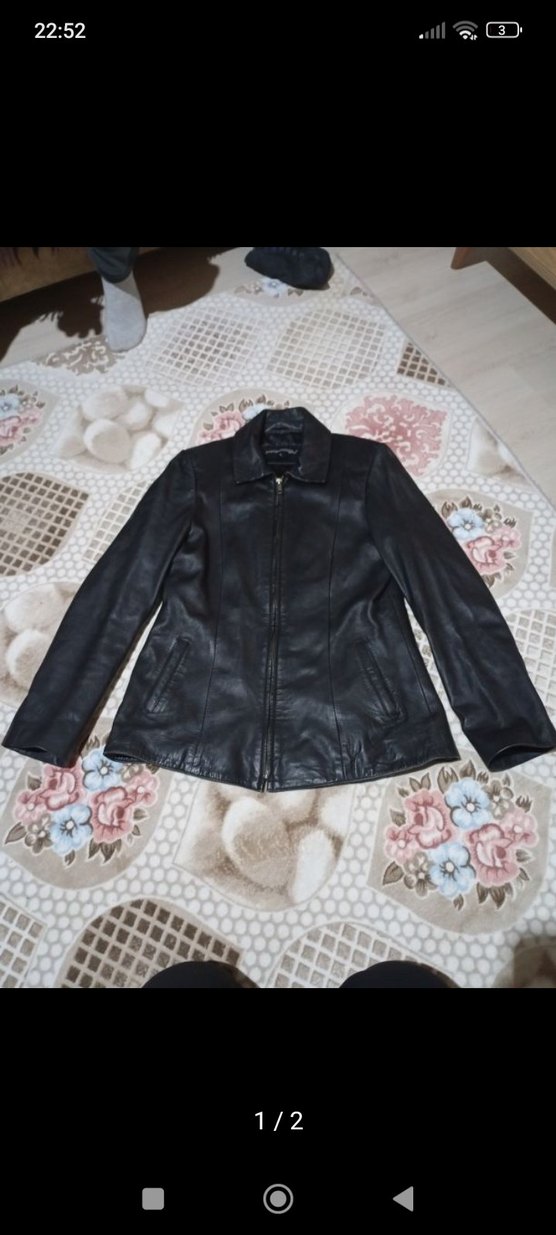 Düz siyah deri ceket, uzun kollu ve fermuarlı, normal kesim ve yaka detaylıdır. Günlük kullanıma uygun. orjinaldir. sıfır ayarındadır.uçlarında terzide hallettirilebilir hafif yıpranmalar vardır. bunun haricinde başka bir defosu yoktur.