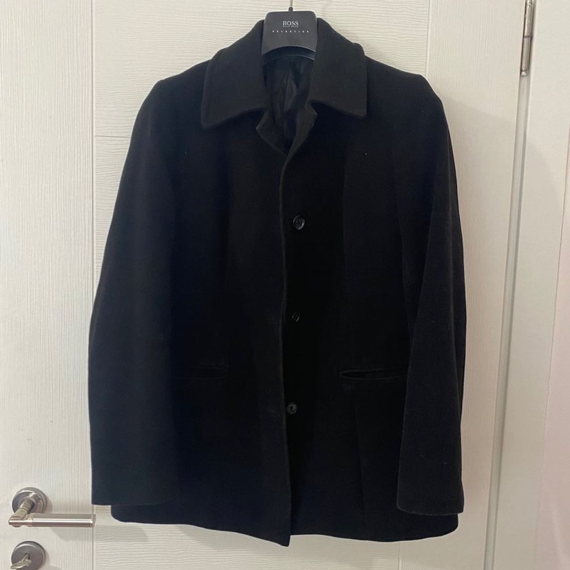 Siyah renk, düğmeli ve notched yakalı kadın kaban. Regular fit ve normal uzunlukta, yumuşak fleece kumaştan. Ofis ve sokak stiline uygun klasik şıklıkta, uzun kollu ve desensiz.