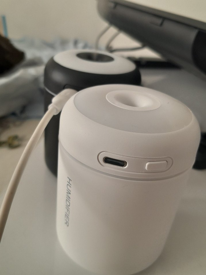 Diger marka beyaz ve gri tonlarda, USB-C şarjlı, kolay kontrol düğmeli kompakt hava temizleyici ve nemlendirici. sarj aleti yaninda gelicektir adet fiyatı