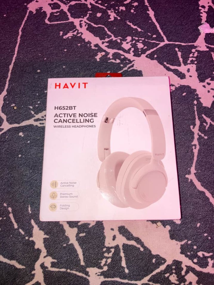 Havit H652BT pastel beyaz kablosuz kulaklık, aktif gürültü engelleme ve kaliteli stereo ses sunar. Katlanabilir tasarıma sahiptir. jelatını açıldı hiç kullanılmadı