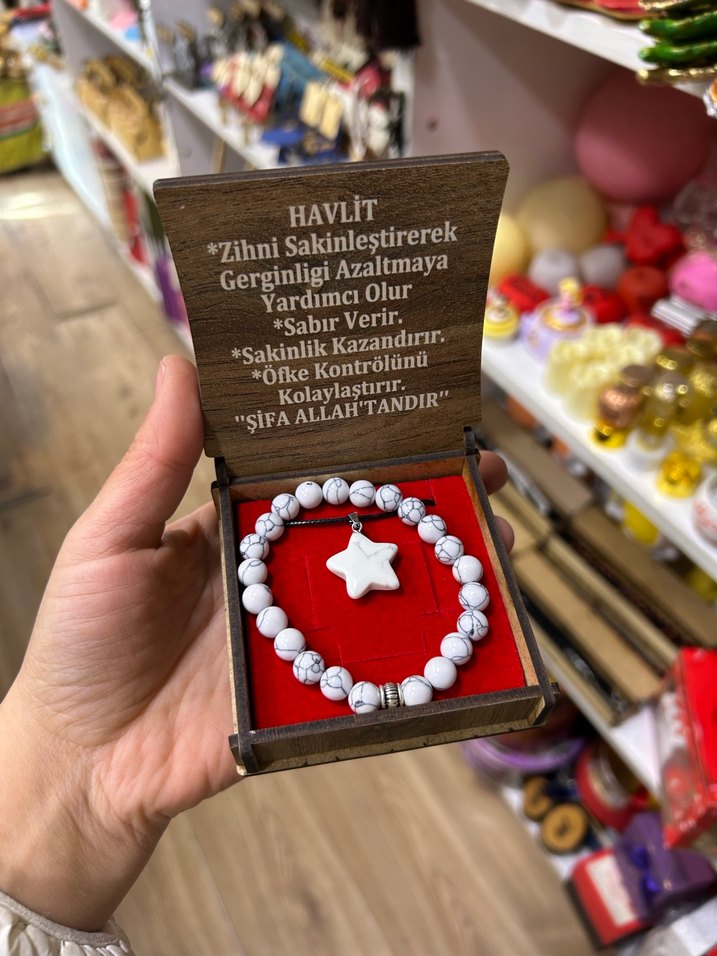Stok durumu sormadan alım yapmayınız. Beyaz boncuklu, yıldız figürlü bohem kadın bileklik. Ahşap kutuda, zihni sakinleştirme ve gerginliği azaltma mesajı ile sunulur. Rahat ve şık.