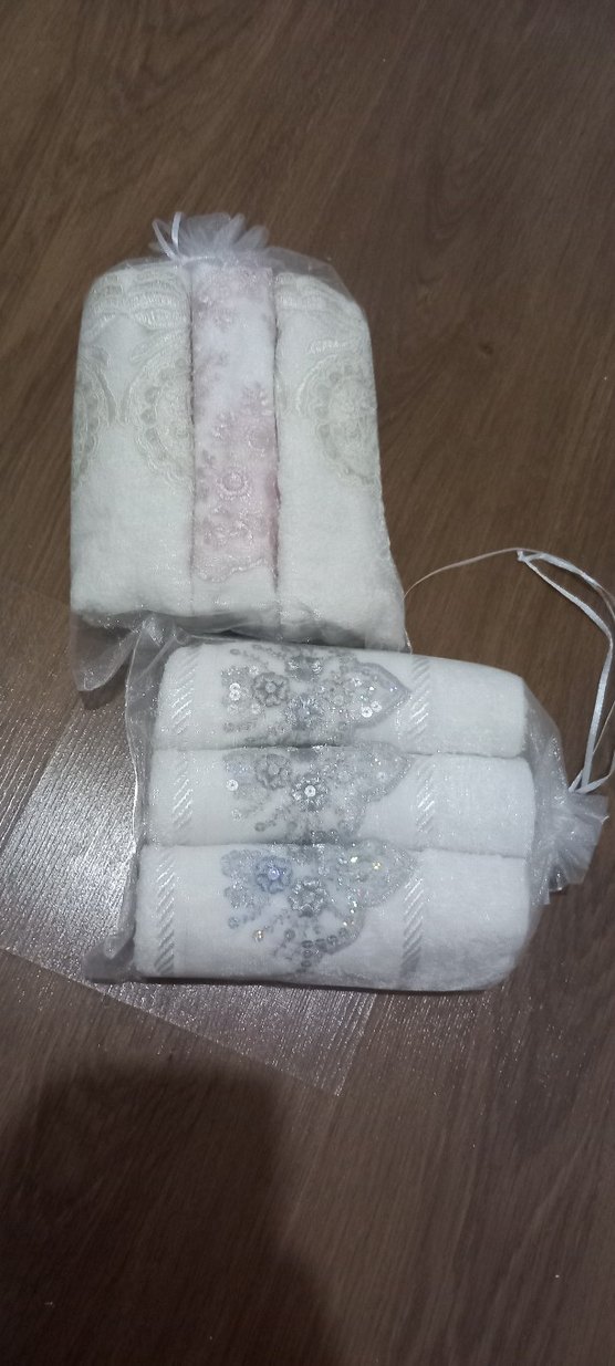 Günlük kullanım için yumuşak ve zarif dokunuş sunan, pastel nakışlı beyaz havlu seti.