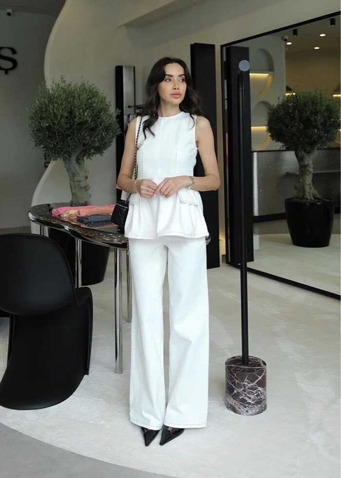 Hiç giyilmedi etiketi yok 36 beden SADECE ÜST PANTOLON YOK Bi kusuru yok Kot Arkadan fermuarlı Ekru renk