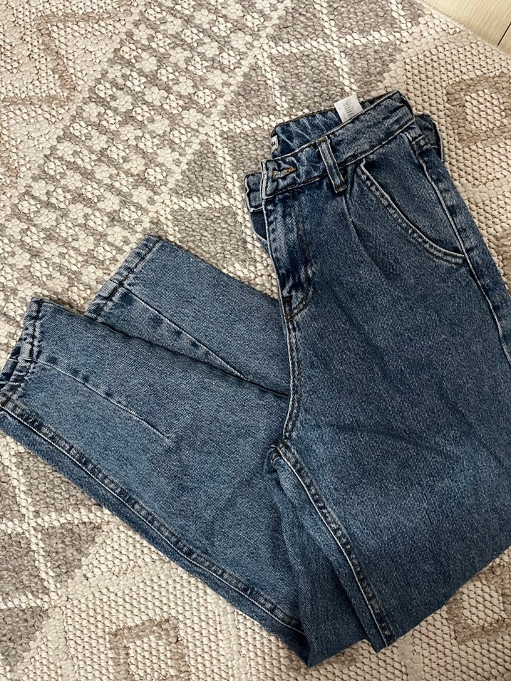 Kadınlar için bol kesim kot pantolon. Normal midi boyda, desensiz mavi renkte rahat ve günlük kullanıma uygun.