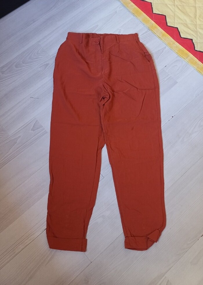 kumasi tiril tiril yazlik bir pantolon sifir gibi 2kere anca giyildi rengi kiremit rengi