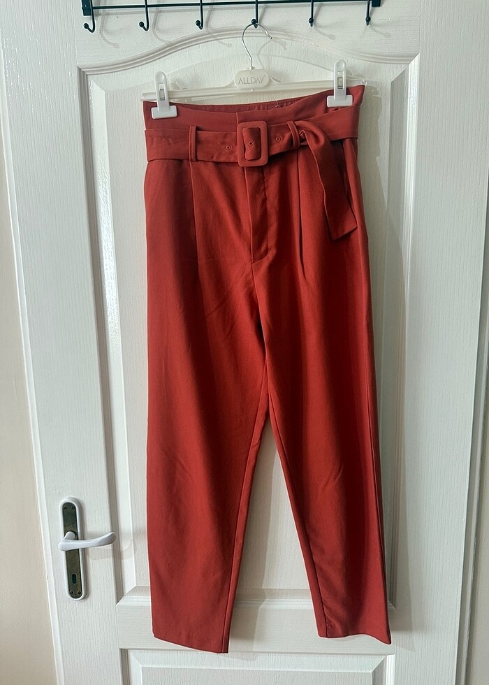 Kiremit rengi havuç model pantolon, beli kemerli. Çok şık. Tertemiz. Beli 38cm boyu ağdan 67 cm.