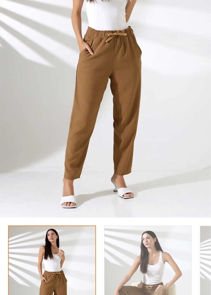 Kahverengi çizgili kareli bir pantolon kumaşı çok kaliteli ütü istemiyor iki kez giyildi defosu yok sıfır ayarında