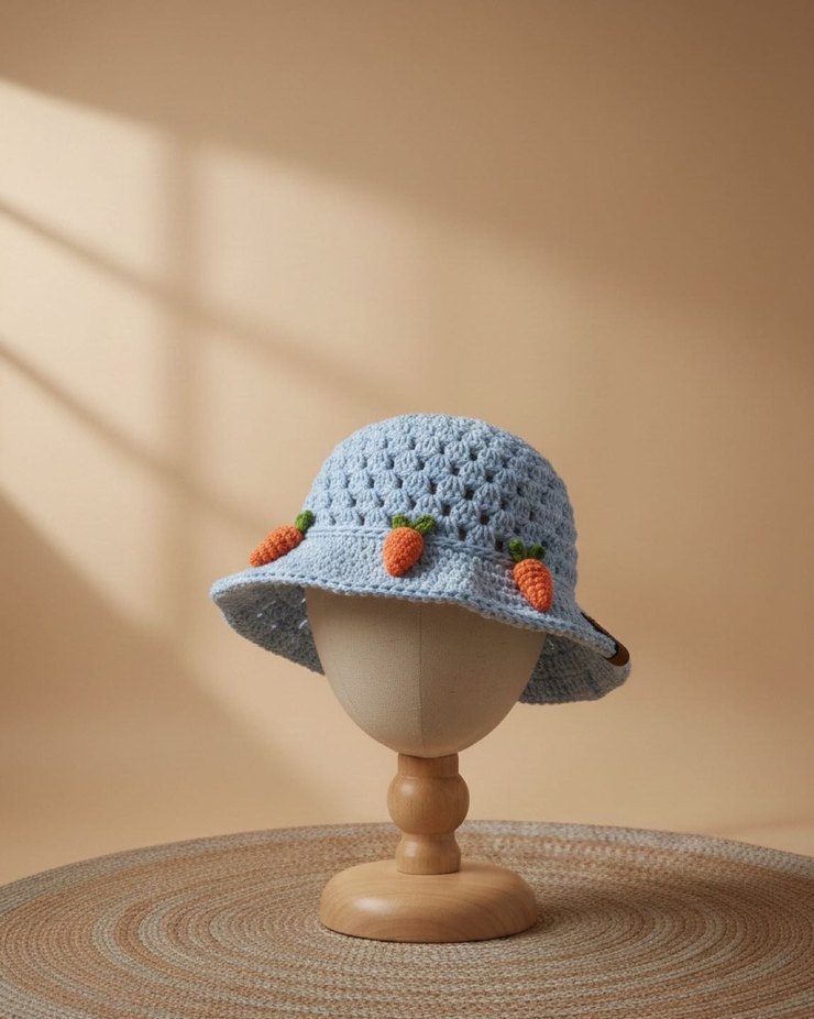 Hemen teslim ürünü 1 adet mavi amigurumi havuç şeklinde süslenmiş şapkadan oluşur. Şapkada 3 arkada 3 olmak üzere 6 adet havuç amigurumi bulunmaktadır. 0-1 yaş bebek ile uyumludur. #amigurumi #babybonnet #bebeksapka #sapka
