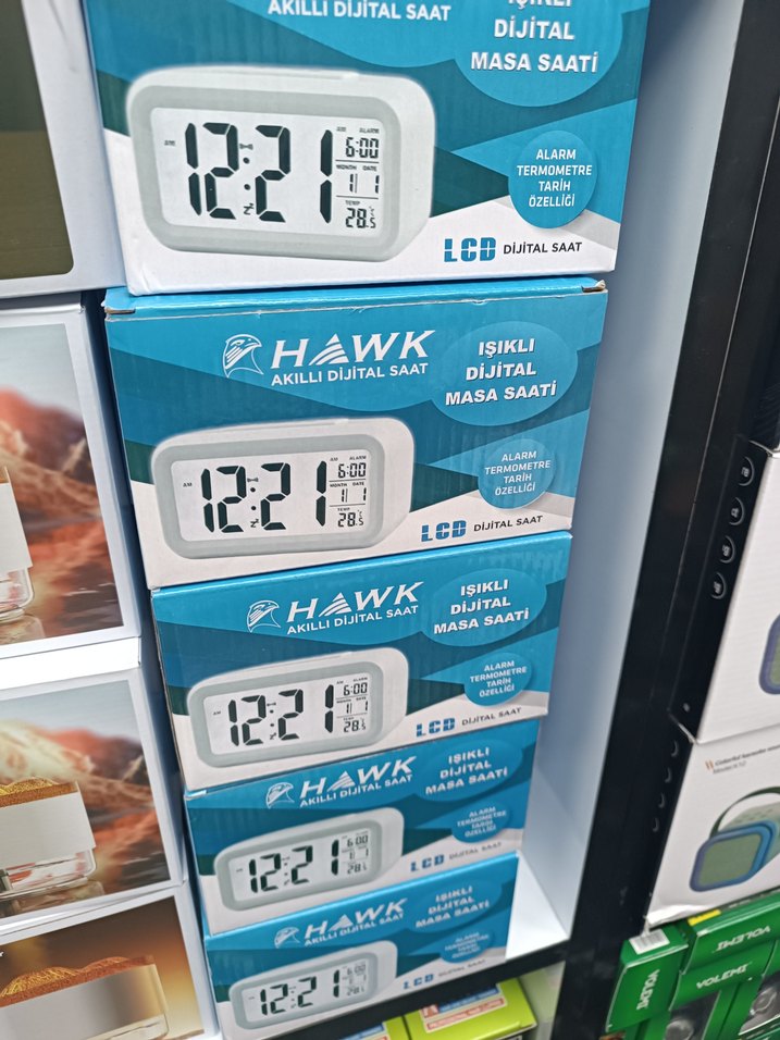 Hawk beyaz dijital masa saati, ışıklı LCD ekran, alarm, termometre ve tarih özelliklerine sahiptir. Akıllı dijital teknoloji ile zamanı net gösterir. ⏰