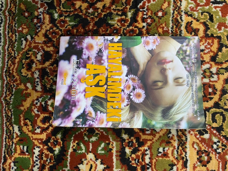 Erich Quinn'in 'Hayalimdeki Aşk' romanı, papatyalarla çevrili sakin bir kadını gösteren kapağıyla dikkat çekiyor.