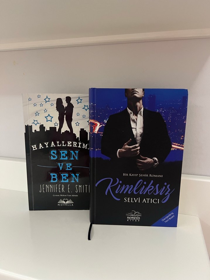 Jennifer E. Smith'in 'Hayallerim Sen ve Ben' ve Selvi Atıcı'nın 'Kimliksiz' romanları yan yana duruyor. Romanlar aşk ve gizem temalıdır.bağımsızdır