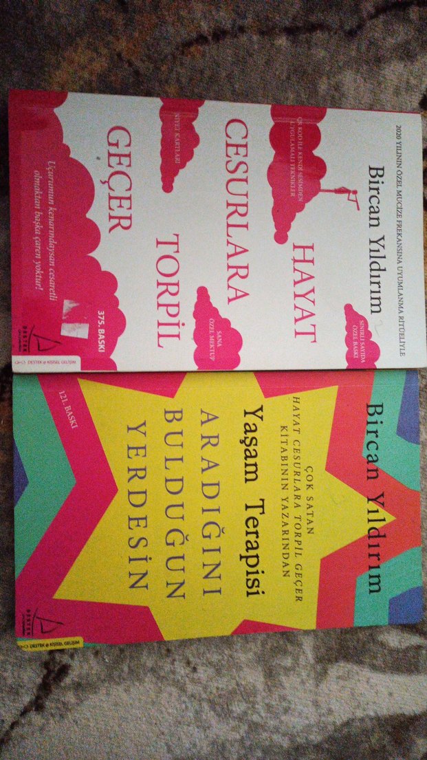 Bircan Yıldırım'ın 'Hayat Cesurlara Geçer' ve 'Yaşam Terapisi' kitapları, kişisel gelişim ve cesaret üzerine rehberlik sunar. (yaşam terapisi olan kitabin çizili yerleri vardir)