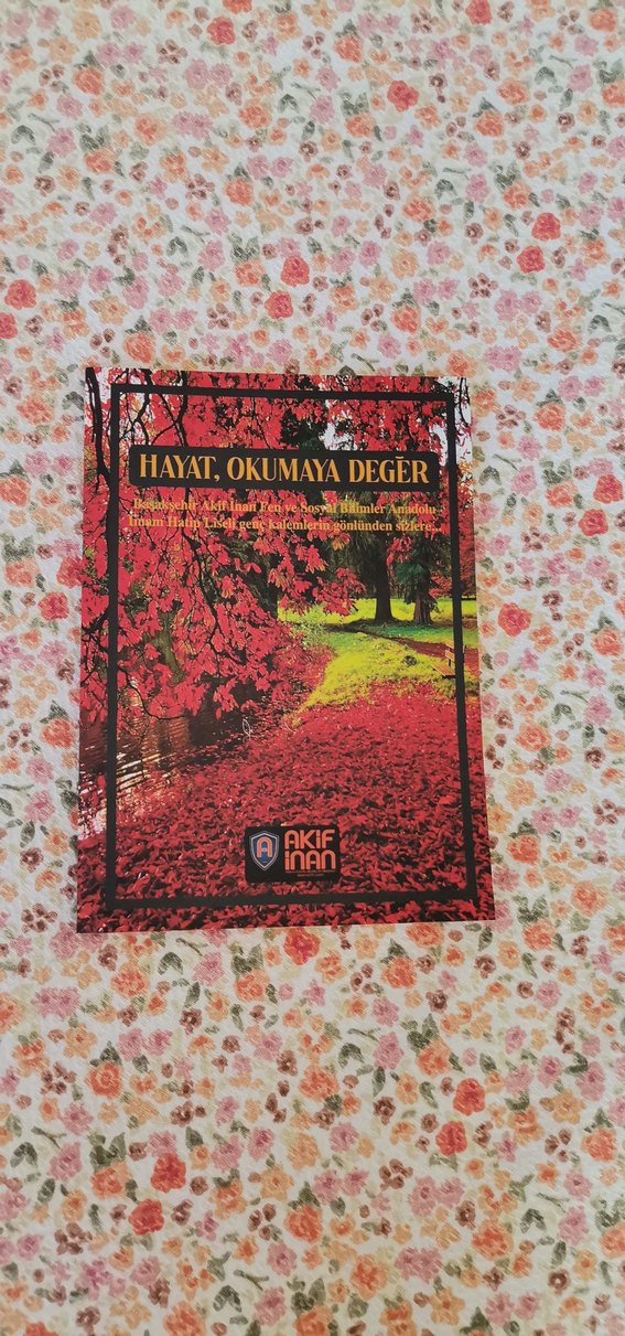 'Hayat, Okumaya Değer' şiir kitabı, kırmızı sonbahar ağaçları ve huzurlu bir yolun yer aldığı kapak tasarımına sahiptir. Anadolu'dan hayat ve doğa temalı şiirler içerir.