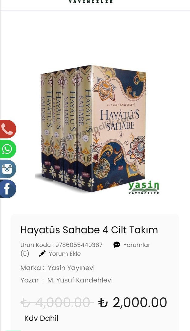 M. Yusuf Kandehlevi'nin kaleminden Hayatüs Sahabe 4 ciltlik set, Yasin Yayinevi tarafından yayımlanmıştır. Sahabe hayatına dair kapsamlı bilgiler içerir.